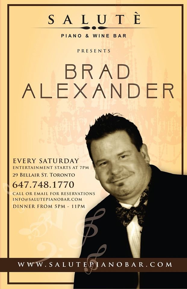 Brad Dean Alexander is pianist/singer/songwriter based in Toronto. After over a decade of working as the piano man on cruise ships he is doing shows in Toronto, and live on Facebook every Wednesday night at 7pm EST. Available for virtual shows as well!