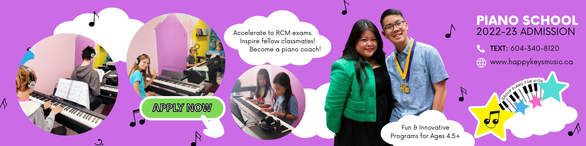 She has over 18 years of piano teaching experience and have worked with children for more than 23 years. She believes the first piano learning experience is the most special and unique moment in a child's life. She knows how important it is to provide a positive, fun, and encouraging learning environment so that children's natural curiosity, use of imagination, self-expression, and creativity can be explored and nurtured.
